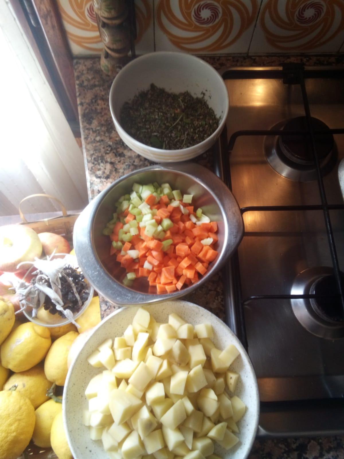 sedano, carota, prezzemolo, patate, aglio, cipolla rossabianca,